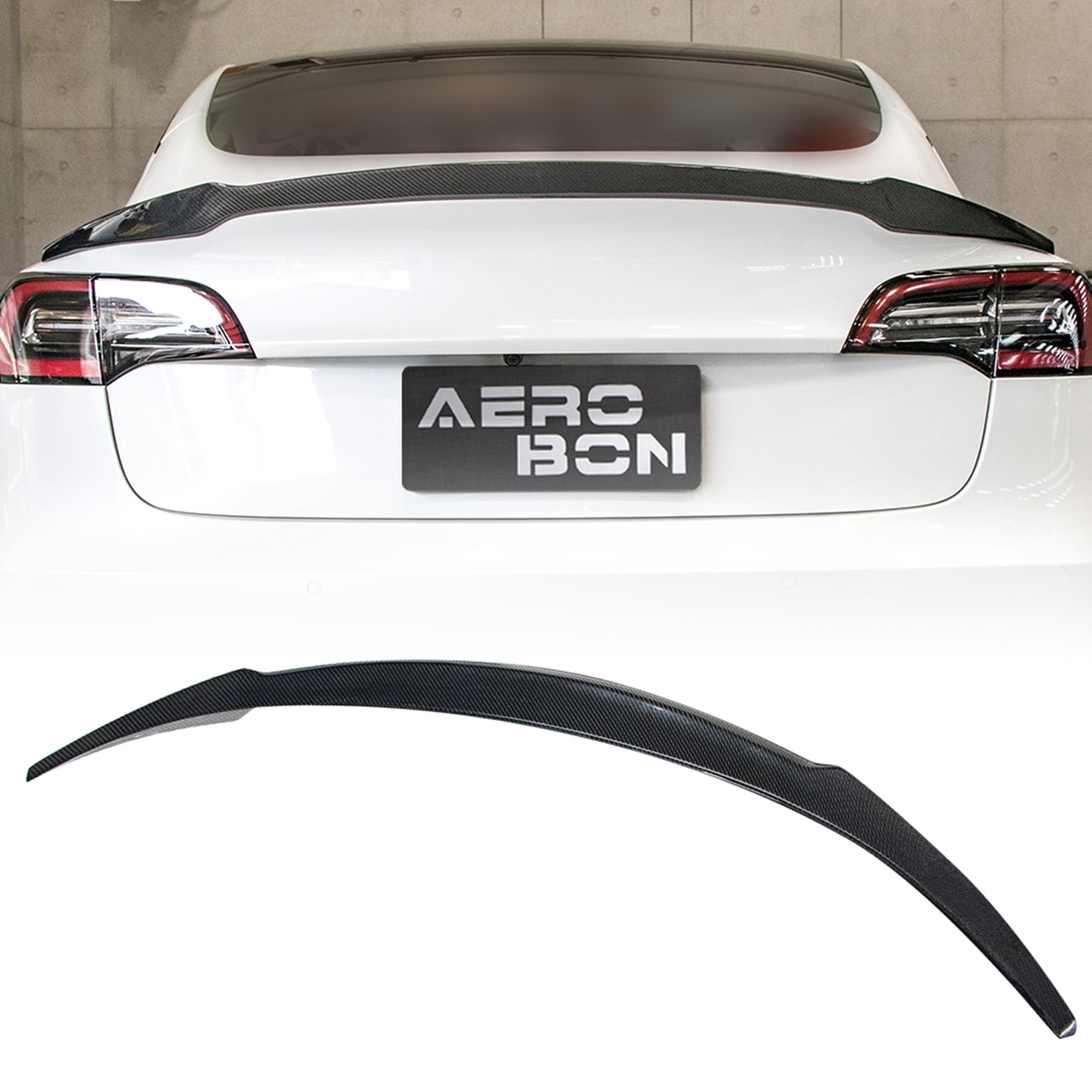 AeroBon Real Carbon Fiber Trunk Spoiler Wing Compatible with 2017-2023 Tesla Model 3 Spoiler (Rev Style)