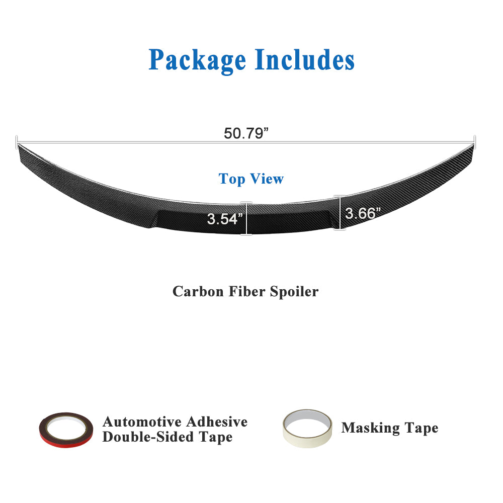 - Easy Installation: No drilling or modifications required! This carbon fiber trunk spoiler installs effortlessly using the included high-strength automotive adhesive tape, ensuring a firm and long-lasting attachment.