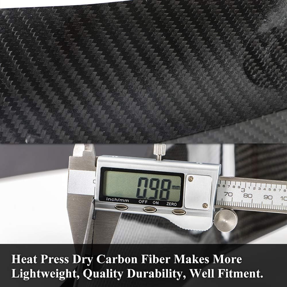- Dry Carbon Fiber: Pre-Preg carbon fiber technology is known as the finest process in carbon fiber manufacturing. It’s Lightweight, Durability, Perfect Cosmetic Appearance.