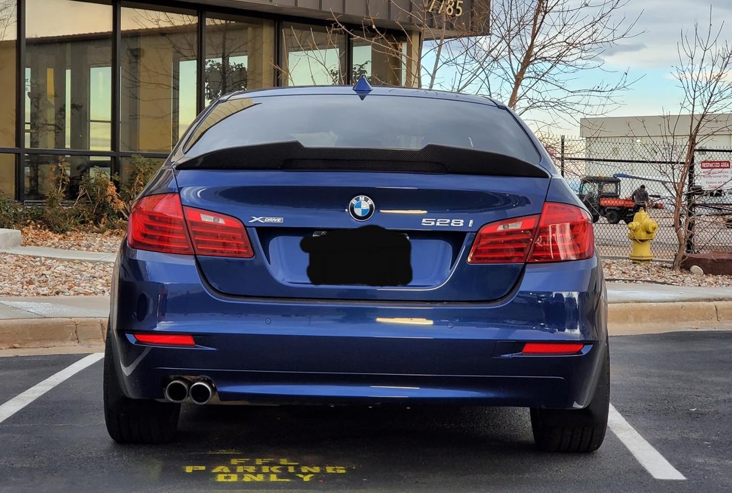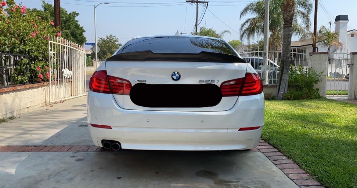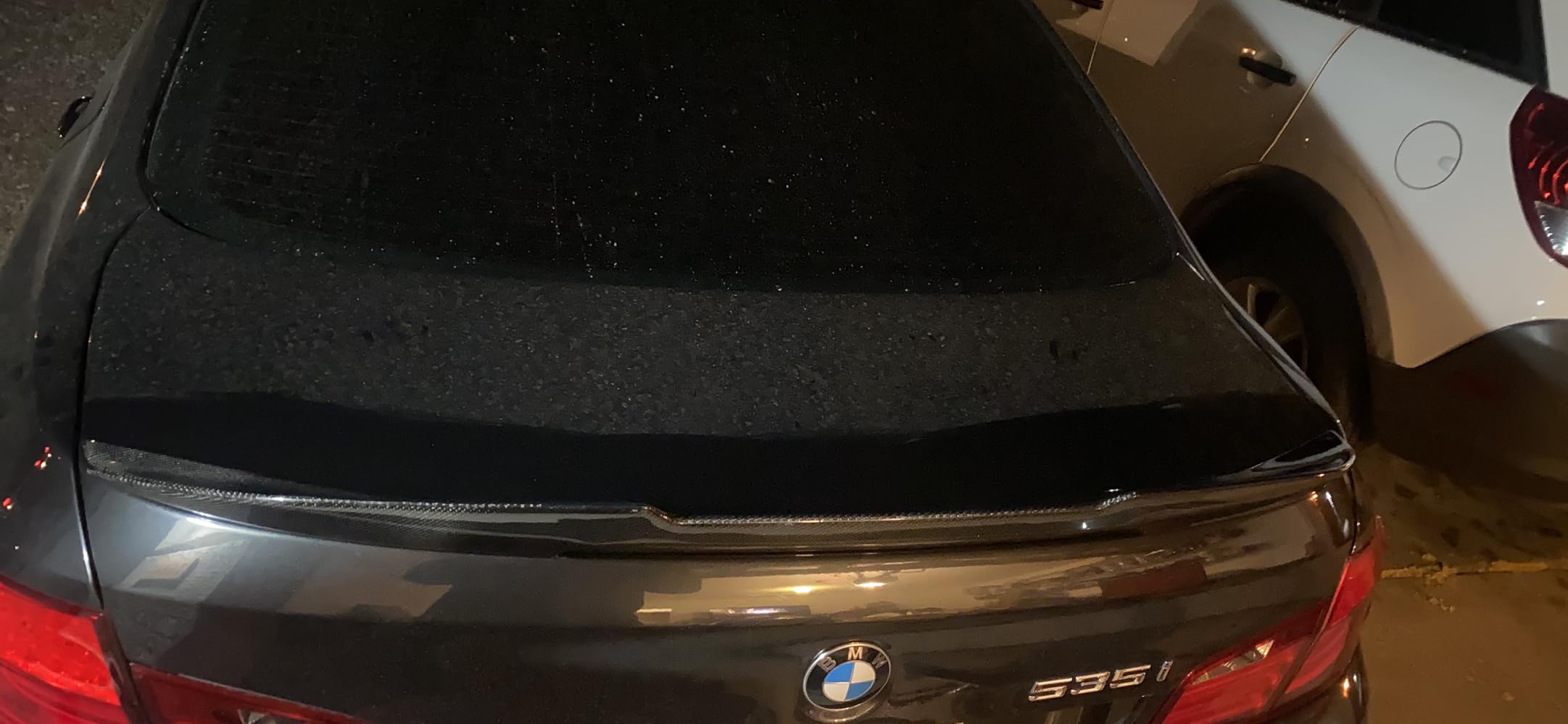 When I decided to put a spoiler on my 550, I did some research. I do research for most things, at least a little. Obviously the research is proportionate to how complicated or expensive the item is. I saw much bigger spoilers, I also saw smaller "barely there" spoilers. Bigger was not a wanted option. Smaller looked weird (like what's the point?) in my opinion. At first I purchased one that was a little more rounded and not as sharply cut out, but still same size. I did not like that one needless to say, that one ended up getting tossed. I came across this one when it didn't have as many reviews. But the few it had convinced me to try it. When I first opened it it was packaged very securely. When I picked the wing up I noticed how incredibly light it was. Carbon fiber is awesome. The instructions to install were very good, no issues understanding. Used painters tape to align everything. We put the wing in the exact position we wanted with the adhesive attached to it. When it was a line perfectly, we then peeled off the second adhesive side and gently placed the wing down. I looked on the right side and the left side and saw that the gap was exactly the same. Then we took a blow dryer and heated it and pressed down to make sure it's stuck. Oh and another thing about the former spoiler (the more rounded one), it's was the lopsided and would rock left to right. I leaner over it and pressed down for several minutes, it glued but eventually would undo itself. Not the situation with this swing. I have had it for almost 2.5 years and still perfect. The picture above is was recently taken. I do have some mods done to my vehicle; exhaust, rims powder coated, tail lights, dark badges. I hope I answered some question anyone had. If you dig this spoiler for your F10, go for it! Definitely recommended!