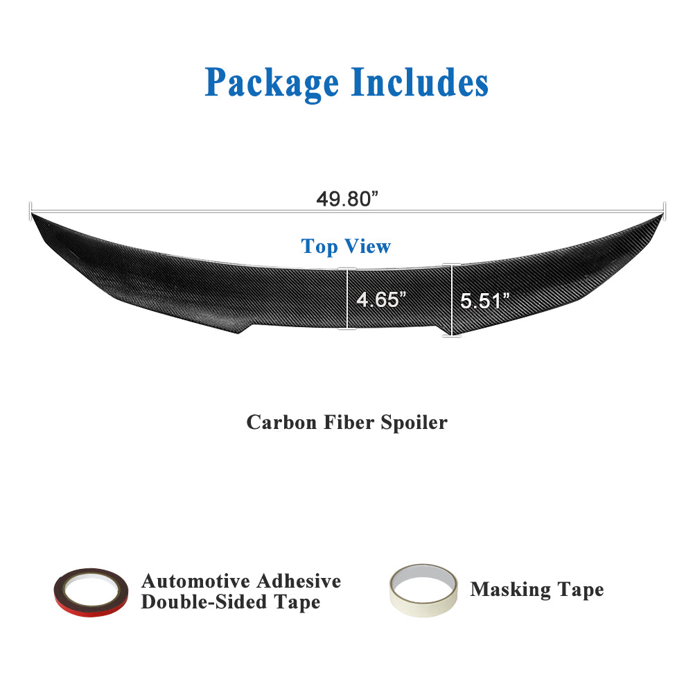 - Easy Installation: No drilling or modifications required! This carbon fiber trunk spoiler installs effortlessly using the included high-strength automotive adhesive tape, ensuring a firm and long-lasting attachment.