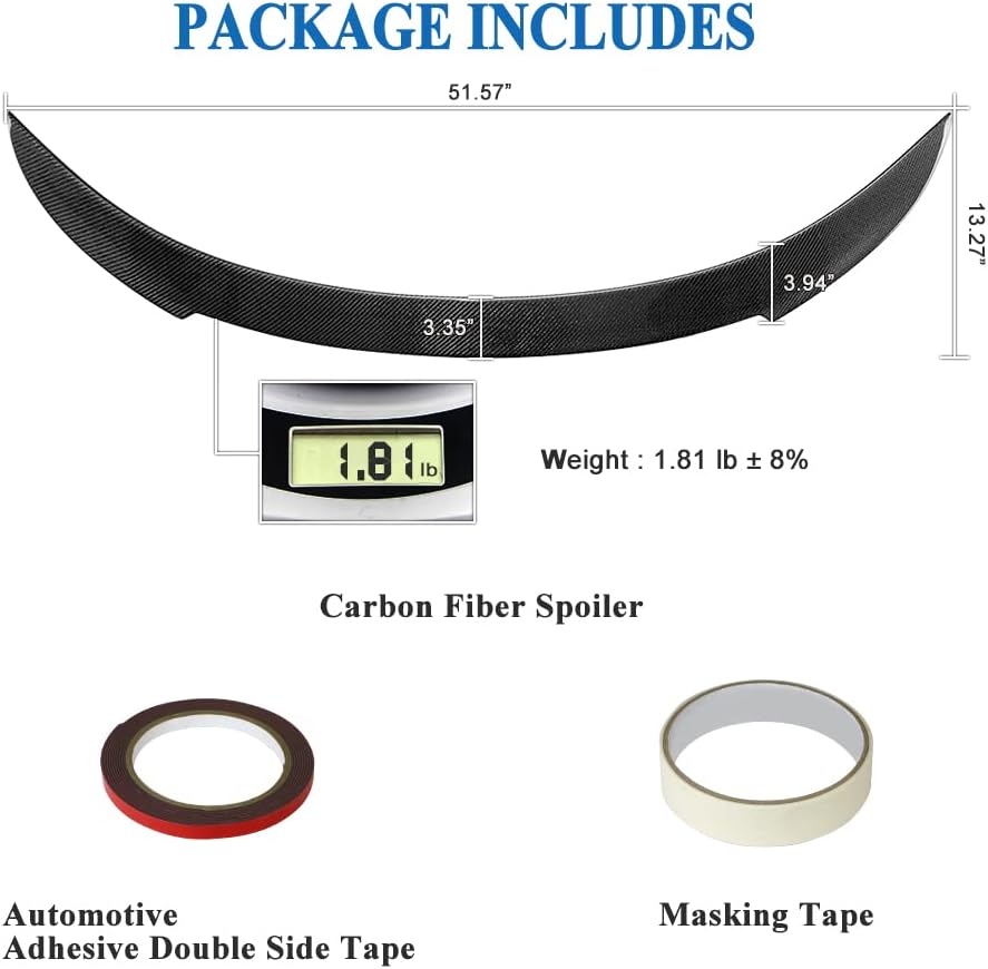 - Easy Installation: No drilling or modifications required! This carbon fiber trunk spoiler installs effortlessly using the included high-strength automotive adhesive tape, ensuring a firm and long-lasting attachment.