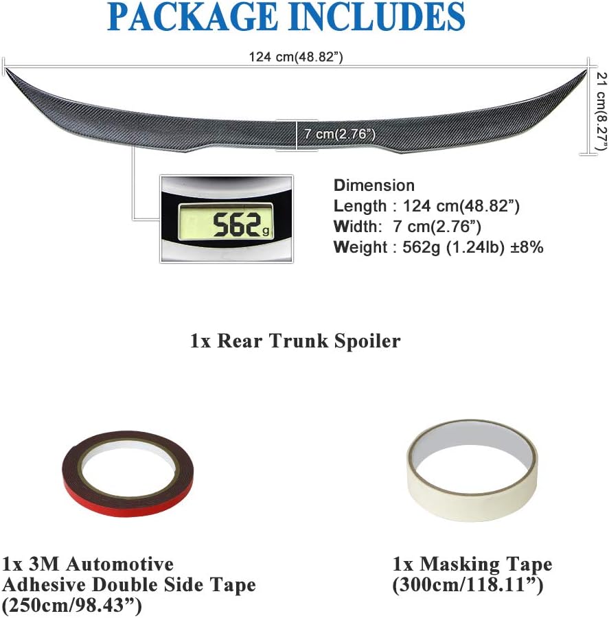 - Package Includes: 1 x Real carbon fiber trunk spoiler, double-sided adhesive tape, and masking tape, for a secure and reliable installation on your F30 F80 M3.
