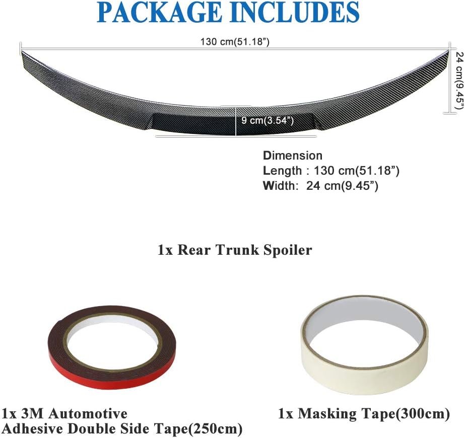 - Easy Installation: No drilling or modifications required! This carbon fiber trunk spoiler installs effortlessly using the included high-strength automotive adhesive tape, ensuring a firm and long-lasting attachment.