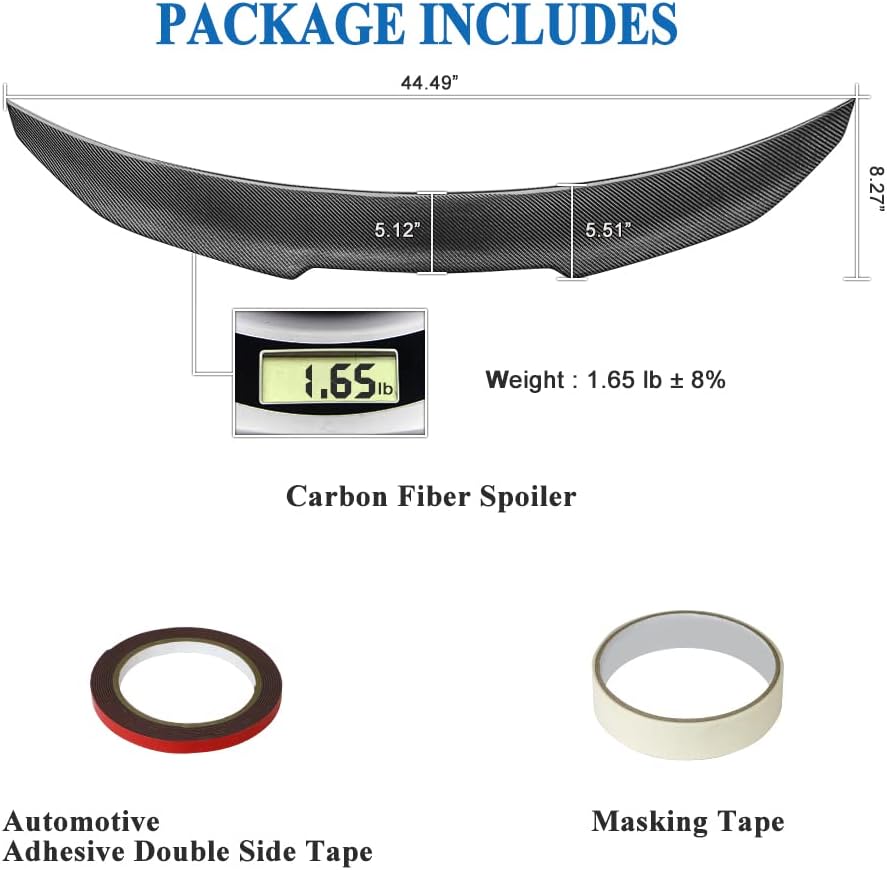 - Easy Installation: No drilling or modifications required! This carbon fiber trunk spoiler installs effortlessly using the included high-strength automotive adhesive tape, ensuring a firm and long-lasting attachment.