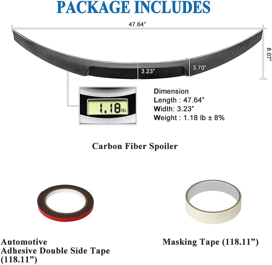 - Easy Installation: No drilling or modifications required! This carbon fiber trunk spoiler installs effortlessly using the included high-strength automotive adhesive tape, ensuring a firm and long-lasting attachment.