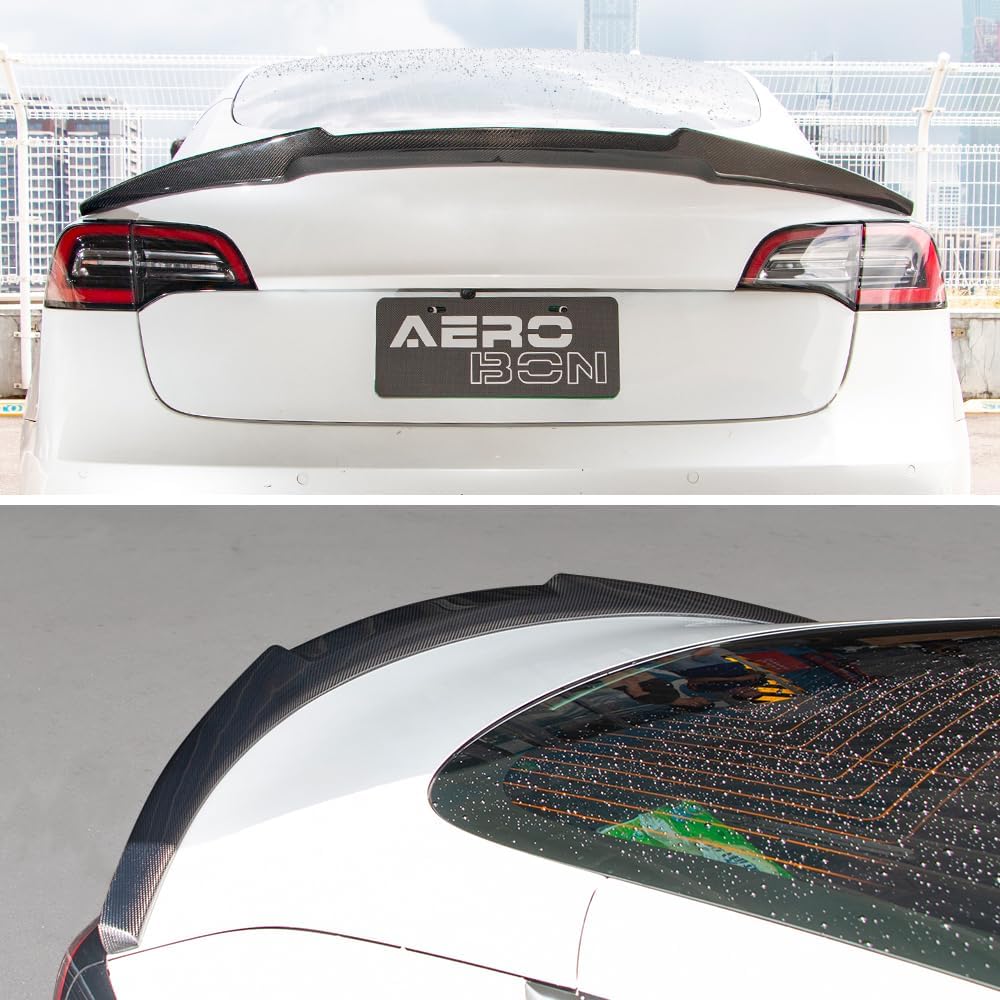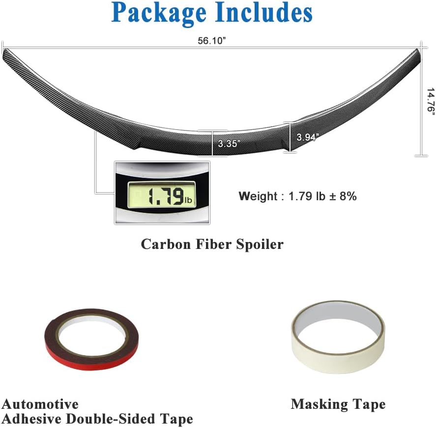- Package includes: Real Carbon Fiber trunk spoiler x 1 pc, Adhesive double-sided tape x 1 pc and Masking tape x 1 pc, for a secure and reliable installation on your Model 3.