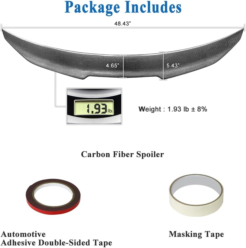 - Easy Installation: No drilling or modifications required! This carbon fiber trunk spoiler installs effortlessly using the included high-strength automotive adhesive tape, ensuring a firm and long-lasting attachment.