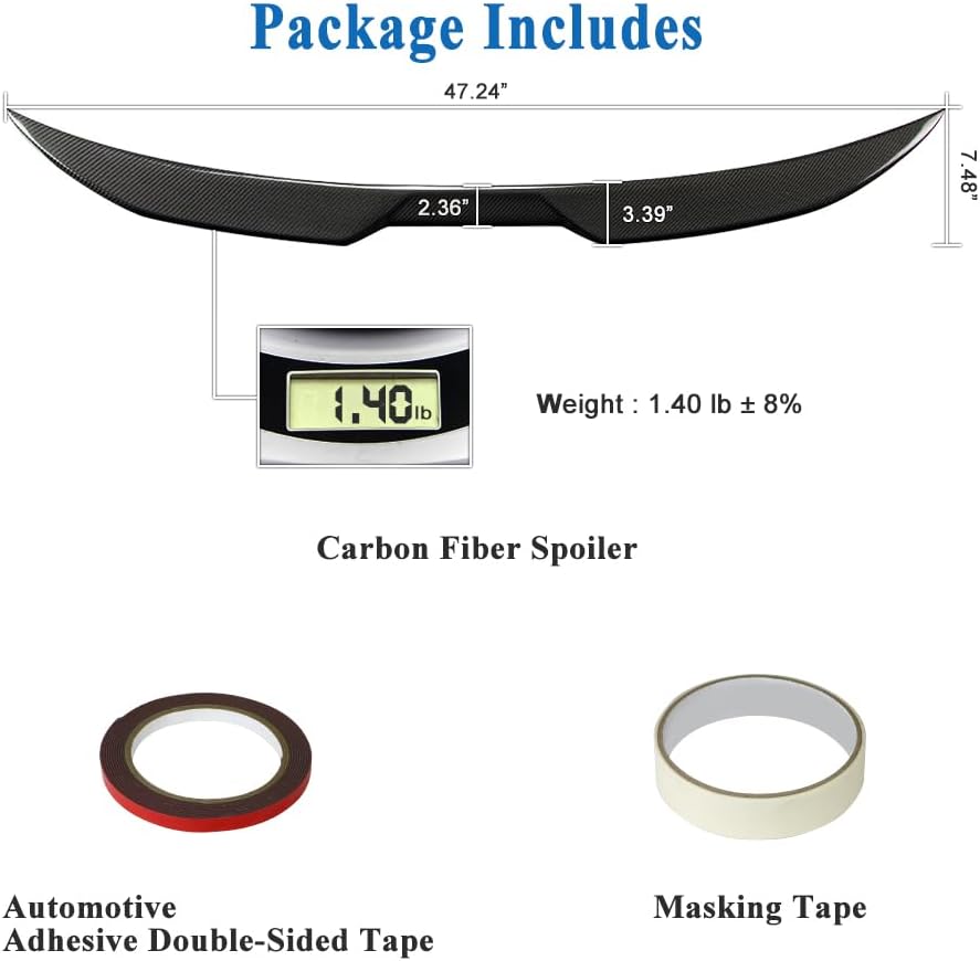 - Package Includes: Real carbon fiber trunk spoiler & Adhesive double-sided automotive tape & Masking tape