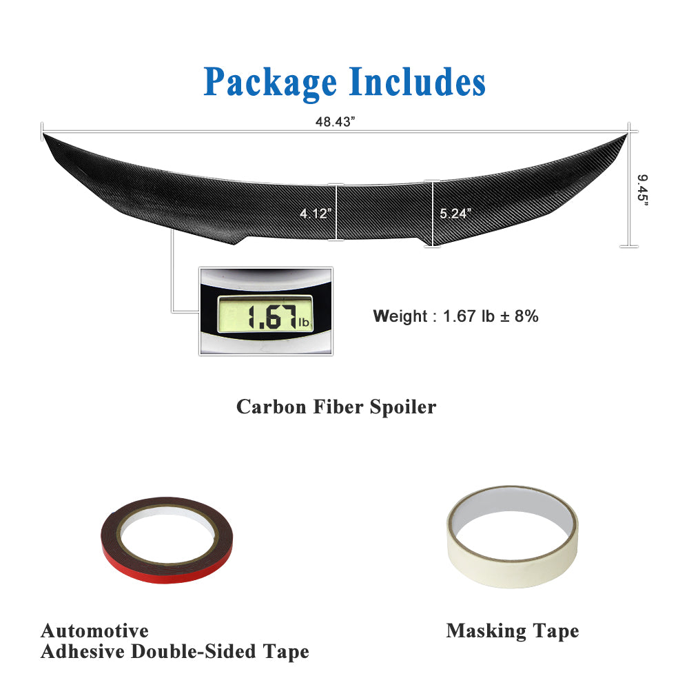 - Easy Installation: No drilling or modifications required! This carbon fiber trunk spoiler installs effortlessly using the included high-strength automotive adhesive tape, ensuring a firm and long-lasting attachment.