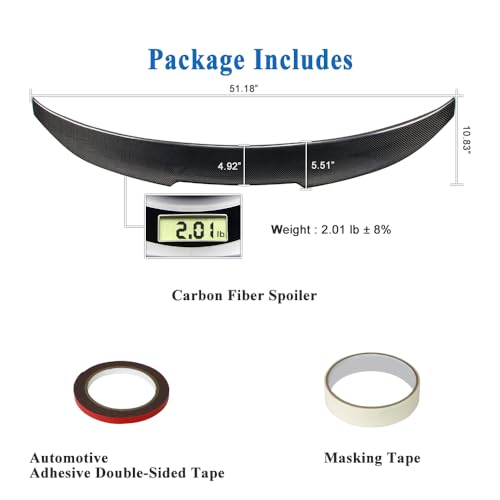 - Package Includes: Real carbon fiber trunk spoiler & Adhesive double-sided automotive tape & Masking tape